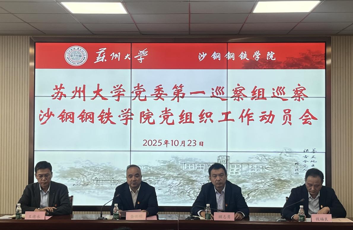 按照学校党委统一部署,校党委第一巡察组将于10月23日至11月7日,对沙钢钢铁学院党委工作开展巡察。10月23日下午,巡察工作动员会在苏州大学阳澄湖校区冶金楼3102会议室举行,第一巡察组全体成员、沙钢钢铁学院党政领导班子成员和全体教职工参加会议。动员会由沙钢钢铁学院党委书记钱福良主持。