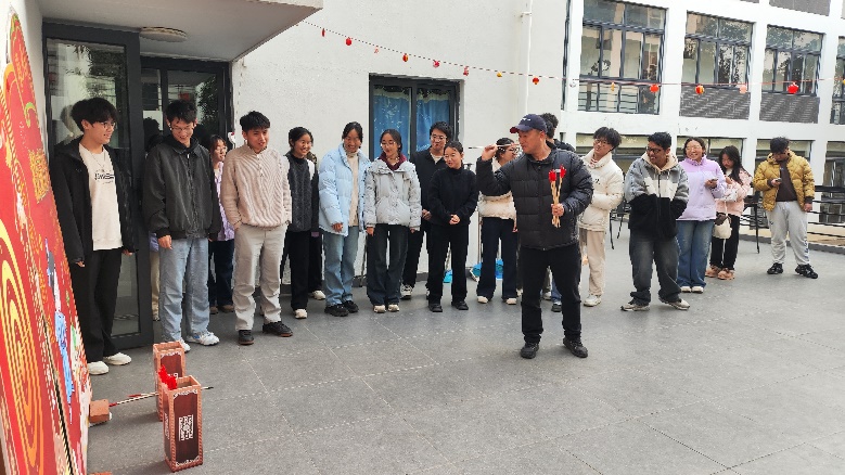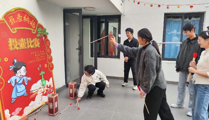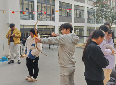 游戏区则是另一番热闹非凡的景象。“射箭、投壶、蹴鞠、滚滚乐、写福字……”一系列融合传统与现代的趣味项目,让同学们在竞技与协作中感受文化的魅力。