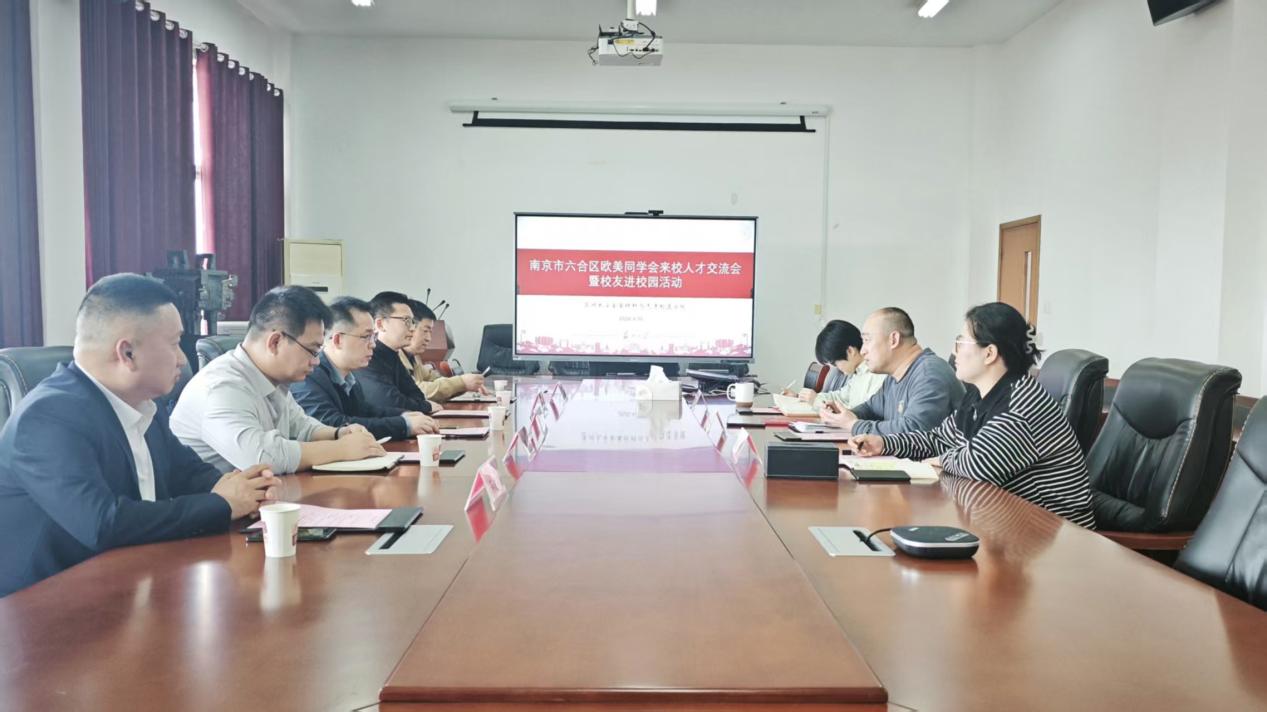 2026年4月10日下午,苏州大学金属材料与先进制造学院在冶金楼4004会议室举办南京市六合区欧美同学会来校人才交流会暨校友进校园活动。六合区欧美同学会常务副会长兼秘书长、南京中简文化发展有限公司董事长兼总经理简祖文,六合区欧美同学会副会长、南京南蓝环保产业有限公司董事长兼总经理郑笛,江苏理工学院校友会企业家分会副秘书长、江苏新锐品牌发展有限公司总经理张亮,汽车与交通工程学院分会会长袁红华,苏州分会副秘书长、方圆品牌营销策划(苏州)有限公司创始人、中国建筑材料流通协会家装委副秘书长蒋晓赋,苏州大学金属材料与先进制造学院党委副书记、副院长徐海洋,团委书记成苗,学工办副主任邹力子出席活动。会议由徐海洋主持。