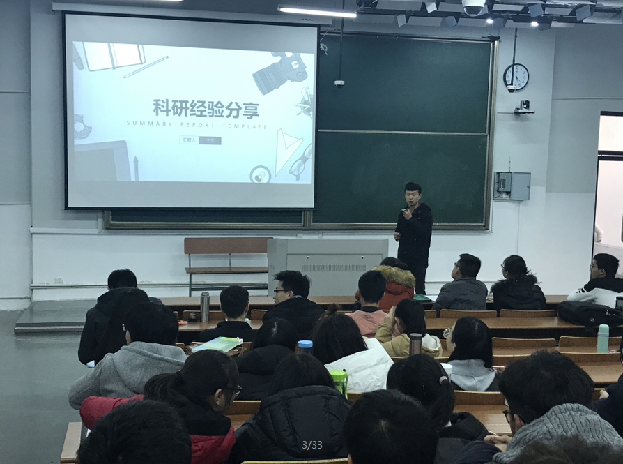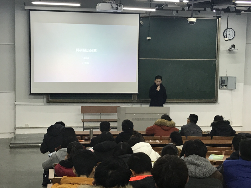 汪杰学长给大家分享了他的科研经历,他分享了科研过程中会用到的网站、资料以及做科研的具体环节;叶霖海学长讲了大学生参与科研的意义,他讲到做科研一定主动联系导师,主动进入课题组参与科研项目,并且在过程中一定要注意团队成员的合作;张敏学姐跟大家分享了她的科研之路,从小时候的懵懂认识到现在实验室里的一些故事,虽然科研很枯燥,但是当取得一点小进步的时候会有很大的喜悦。