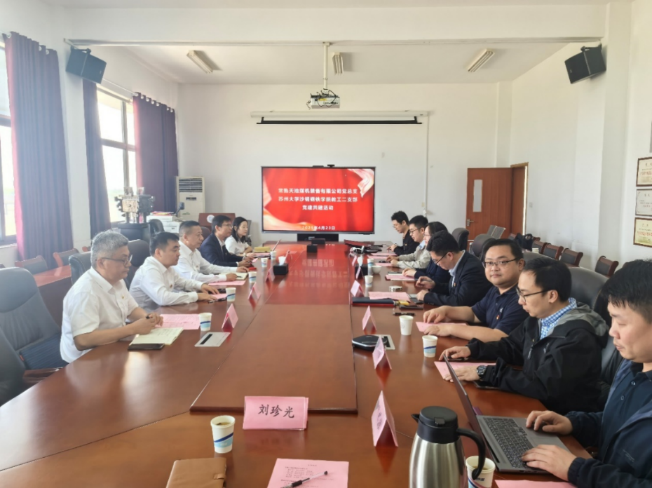 2025年4月23日上午,中煤科工集团常熟天地煤机装备有限公司(以下简称:常熟煤机)党总支与沙钢学院教工第二党支部联合开展“党科融合、建研未来、共树新风”主题党日活动,深化校企合作,推动党建与业务深度融合。常熟煤机杨小军总经理、党总支委员陈烜副总经理、党总支委员袁岳东总工程师、杜尊重副总经理、党群工作部杨菲菲副部长,沙钢学院党委书记沈云彩,沙钢学院教工第二党支部全体党员共同参加主题党日活动。党日活动由教工第二党支部书记张庆宇主持。