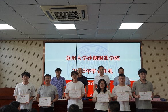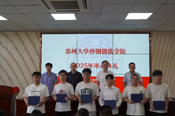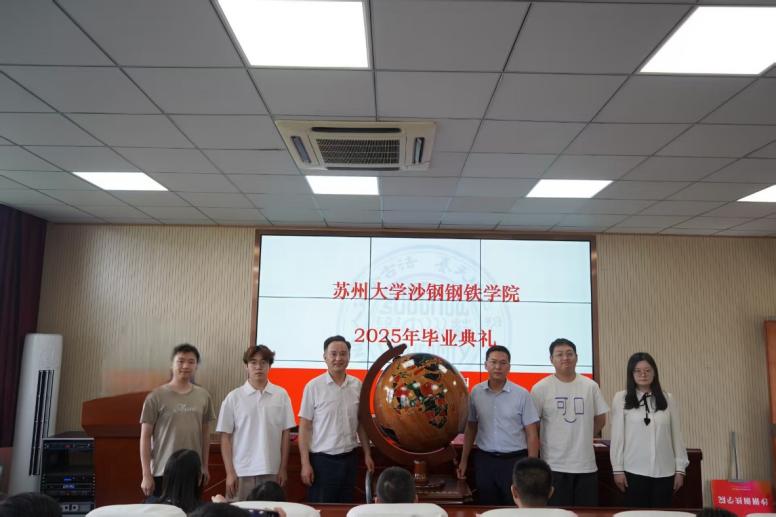2025年6月20日下午,苏州大学沙钢钢铁学院2025年毕业典礼在阳澄湖校区冶金楼3102举行。院党委书记钱福良,副院长王德永,党委副书记兼副院长徐海洋,冶金工程系主任盛敏奇,毕业班班主任、辅导员,及全体毕业生出席。典礼由徐海洋主持。