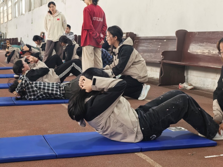 仰卧坐垫上,每一次起落都是对极限的挑战。