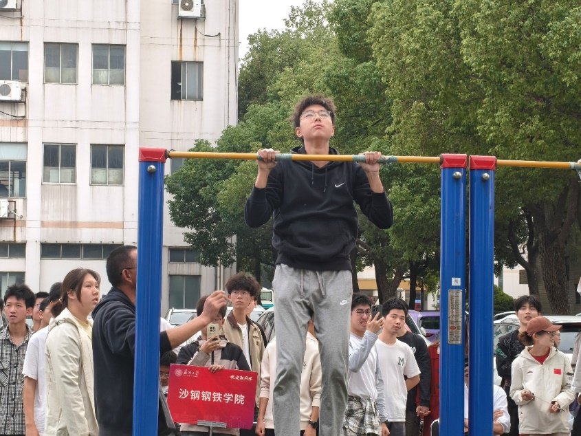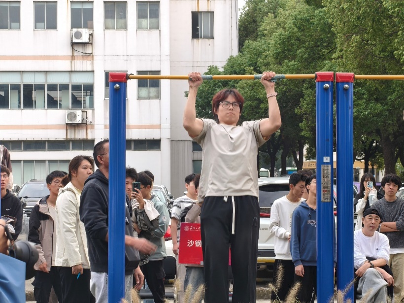 紧握单杠下,手臂的酸痛挡不住向上的执着。