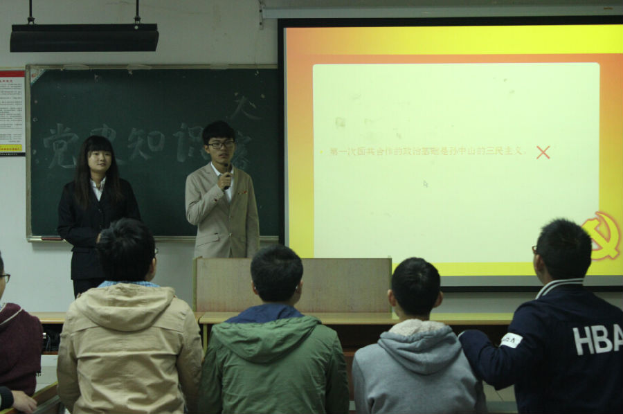 2015年11月30日晚6:30,沙钢钢铁学院“党在我心中”党史党章知识竞赛在工科楼210成功举办。本次活动由沙钢钢铁学院分党校主办,全体学生党员、入党积极分子及2015级冶金工程班同学参加了活动。