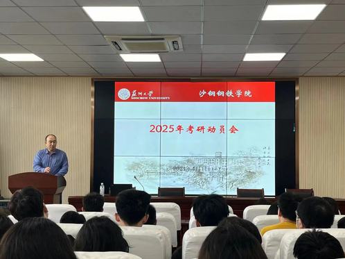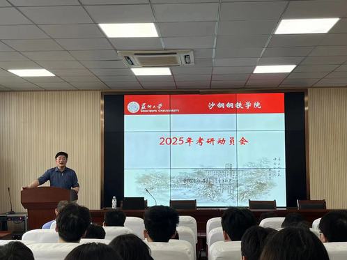 为贯彻学校“铸魂逐梦”工程,落实“成长陪伴”计划,推动本科生高质量发展,精准帮助学生认清考研形势、了解考研政策、树立考研目标、增强考研信心。2024年4月1日下午,沙钢钢铁学院召开2025年考研动员会,副院长丁汉林、党委副书记兼副院长徐海洋出席,全体2021级学生参加,会议由邹力子主持。