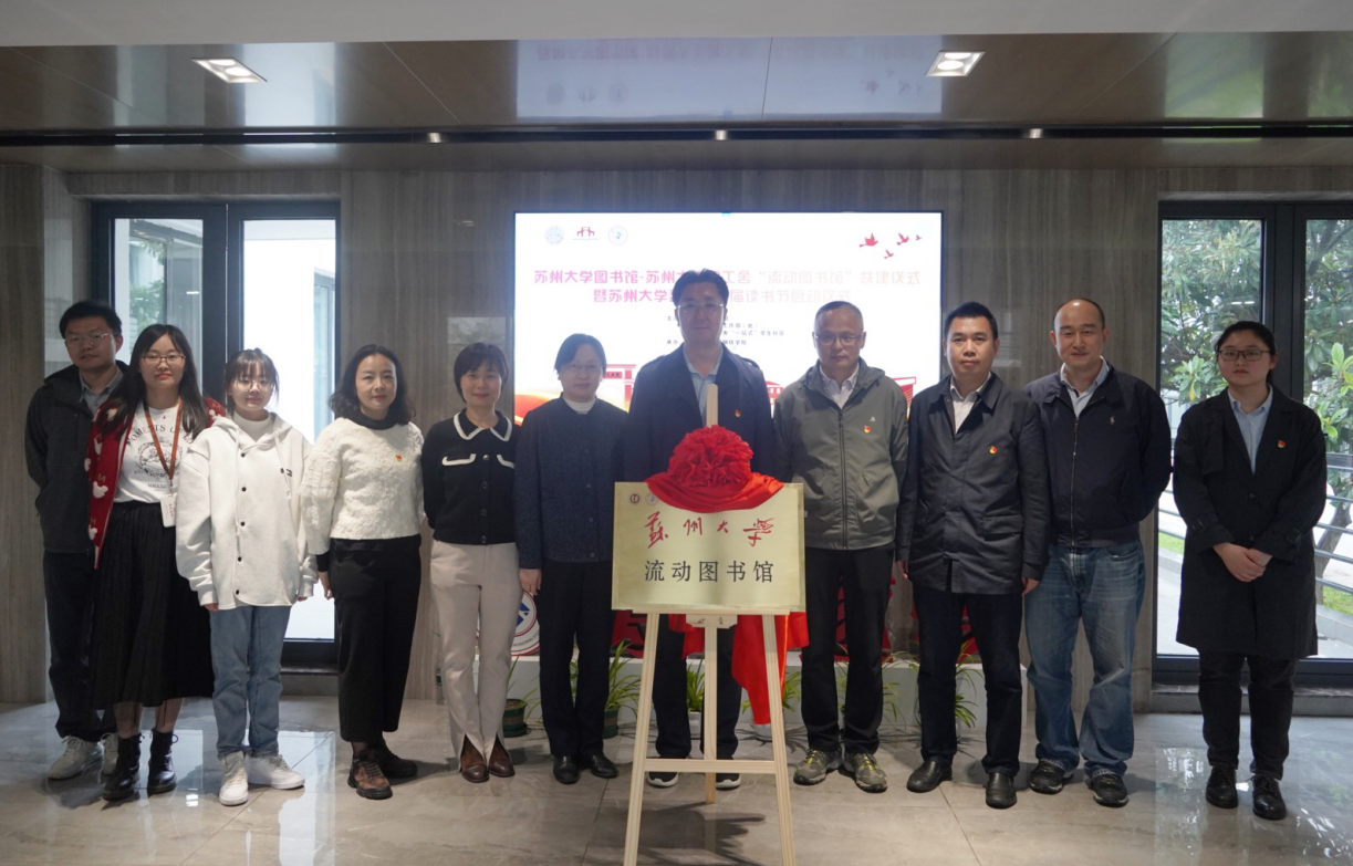 4月17日,苏州大学图书馆与智工书屋“流动图书馆”共建仪式暨智工舍首届读书节活动在阳澄湖校区举行。学生工作部(处)部(处)长董召勤,图书馆党委书记、馆长钱万里,沙钢钢铁学院党委书记沈云彩,学生工作部(处)副部(处)长潘爱华,轨道交通学院党委副书记、副院长胡洋以及相关工作人员参加了仪式。仪式由沙钢钢铁学院党委副书记、副院长徐海洋主持。