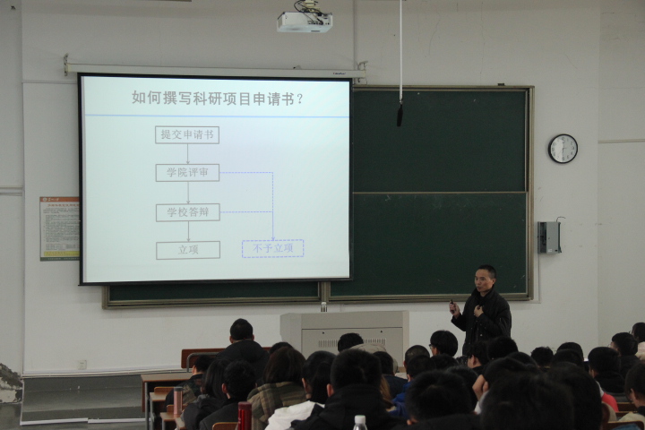 接着,钟院长为同学们详细介绍了五大科研项目和竞赛,分别是:莙政基金、大学生创新创业训练计划项目、大学生课外学术科研基金项目、“挑战杯”大学生课外科技作品竞赛、“苏大天宫杯”大学生创业计划竞赛。就如何撰写科研项目申请书方面,钟院长提醒同学们要注意选题与立项背景,其应当新颖、有理论与实际研究意义。提交申请书后学院会组织院内评审,通过学院评审后还需参加学校答辩,最后方可立项。