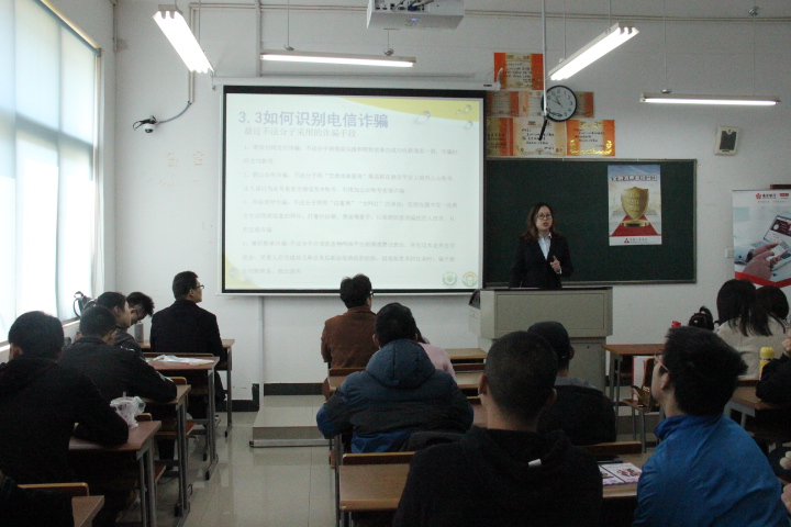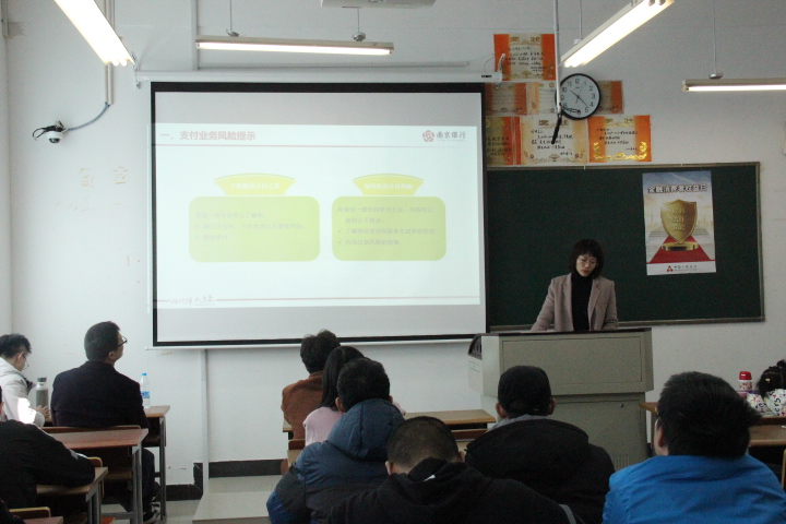首先,南京银行苏州分行以“权利 责任 风险”为主题给学院青年学生带来金融知识的讲座,主要讲解了我国目前的金融机构体系、银行卡基础知识简介、大学生如何识别和防范电信诈骗、大学生如何识别和和防范不良贷款。由于现今社会电信诈骗与校园贷的横行,本次讲座提升了大学生保障自身资金财产安全的意识和能力,不让青春为不良“校园贷”买单。此外,同学们还了解到了新型的支付工具,清楚了其功能的同时也了解到隐藏的风险,并学会一些防范支付风险的小技巧。