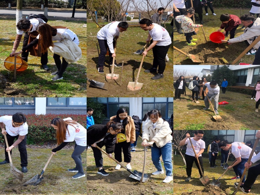 随后,南京银行苏州分行的团员青年与沙钢钢铁学院的青年学生一同参与了植树活动。在鸟语花香的早春时节里,共植一棵树,为美丽校园增添绿意。大家或三五成群,或两两结伴,自觉地组成一个个小分队。有的扶树苗,固定位置;有的拿铁锹铲土;有的脚踏土壤夯苗;有的提水浇灌树苗……大家相互协作,分工明确、有条不紊,到处都是忙碌的身影和劳动的欢声笑语。