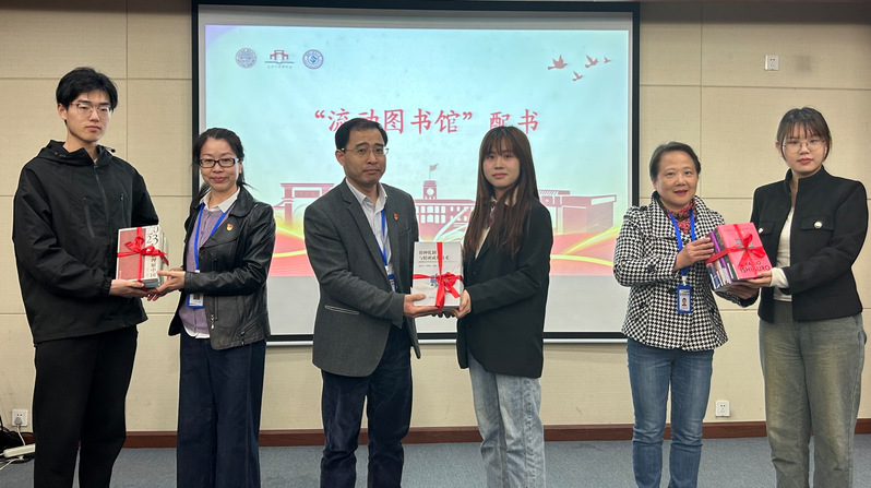 图书馆读者服务部老师代表为智工书屋“流动图书馆”配书。