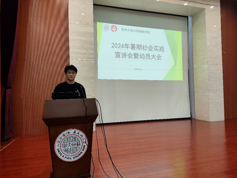 习近平总书记指出:“要坚持知行合一,注重在实践中学真知、悟真谛,加强磨练、增长本领。” 为深入学习贯彻习近平新时代中国特色社会主义思想,引领青年学子更加积极主动地投入到社会实践中,帮助同学们更好地规划实践路线,5月6日下午3点,我院在图书馆大报告厅召开2024年暑期社会实践宣讲会暨动员大会,沙钢钢铁学院党委副书记徐海洋,团委副书记成苗,2023级本科生辅导员邹力子出席活动,2023级、2022级全体学生参加。活动由院科协执行主席袁宇同学主持。