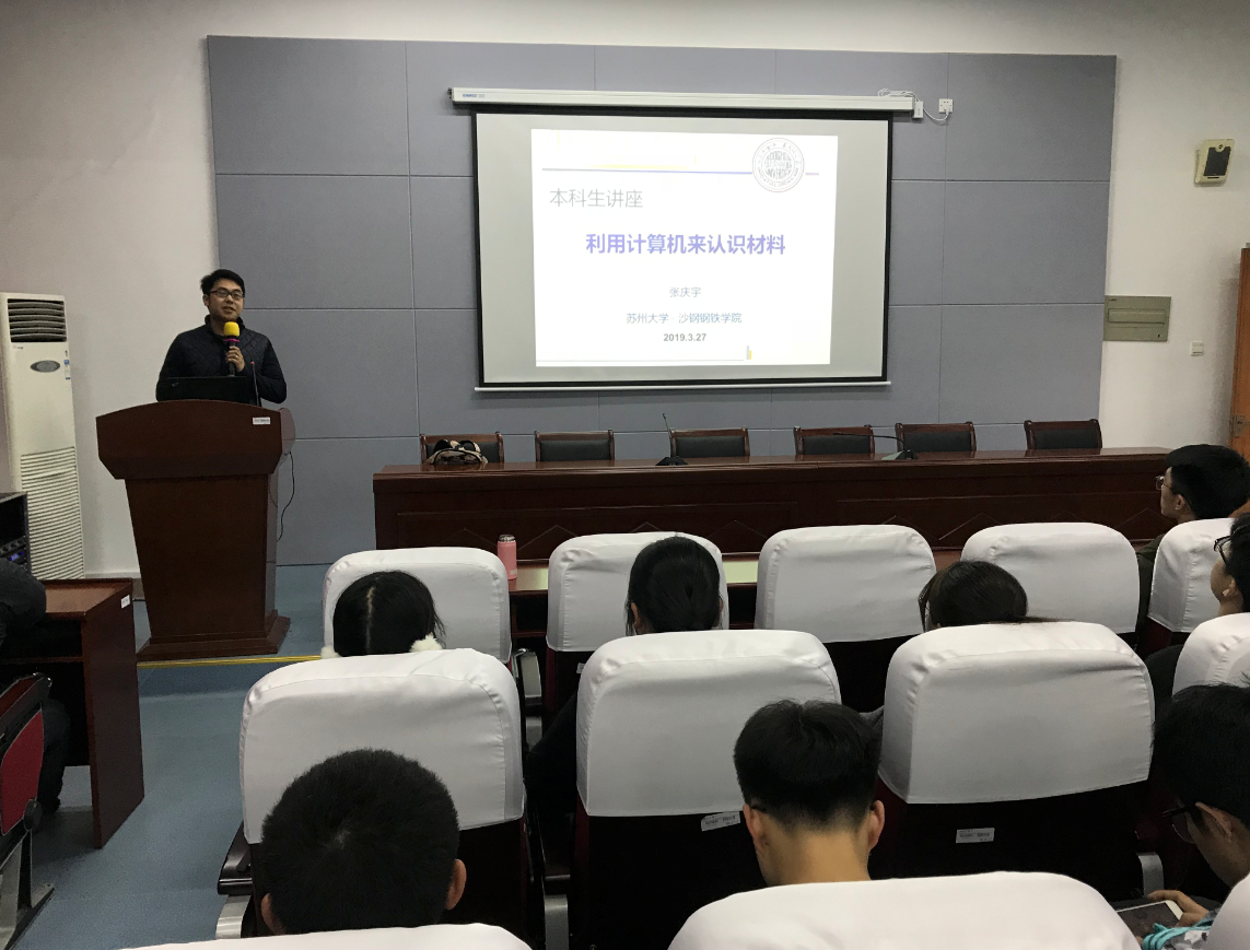 3月27日下午2点,“钢铁之声:利用计算机来认识材料”主题讲座在冶金楼3102举行。本次讲座邀请到学院张庆宇老师作为主讲,张庆宇老师2018年9月博士毕业于东南大学材料科学与工程学院,读博期间到德国耶拿大学访学习一年,主要研究方向为金属材料凝固组织演化和微纳尺度多相流现象的数值模拟。全体2018级本科生参加讲座。