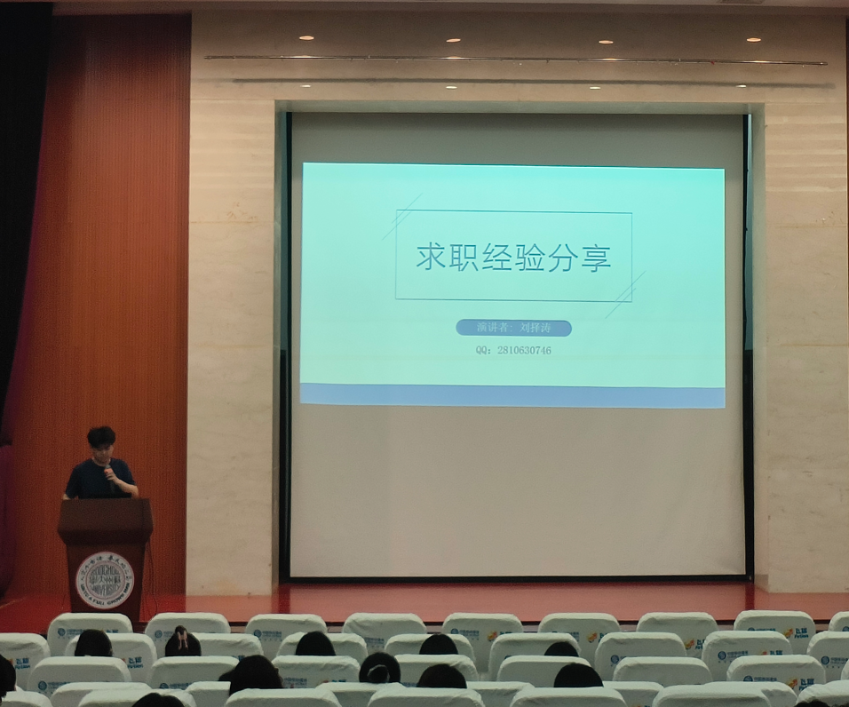 刘择涛入职厦门建发有限公司。他从简历制作入手跟大家分享了就业的经验。他强调个人能力培养的重要性,鼓励大家在大学期间积极参加竞赛项目,例如莙政基金项目、高数竞赛以及学院的学科竞赛,能极大提高科研能力,社交能力,在这些项目的经历中学习,让自己逐步变得自信坦荡。