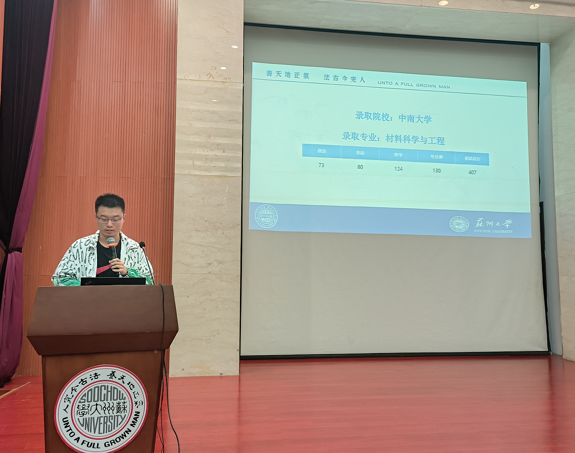 陈麟以总分第一的成绩考研至中南大学。首先他介绍了考研学校选择的三个重点,一看学校往年的分数线,二看专业课的难度,三看学校是否保护第一志愿。他强调备考时自律的生活状态也十分重要,他将备战考研分为三个阶段,每个阶段侧重点皆不相同。最后他向正在备考的同学并送上美好祝福语:考研备战是一个持久战,坚持到最后就有可能发生奇迹,拒绝焦虑,拒绝攀比,保持自己的学习状态。
