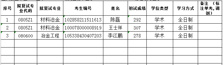 2018年沙钢钢铁学院硕士研究生拟复试名单(2)