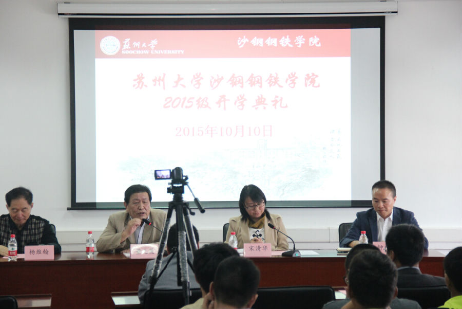 教师代表王晓南结合个人经历与同学们分享了他的切身体会,希望大家能以良好的心态面对挫折,尽快适应大学生活;树立明确的目标,努力提高自我综合能力与素养。2013级冶金工程班郝月莹代表老生发言,她建议新生们既要踏实学习,又要积极参加实践活动,要与人为善,做一名品格优秀,综合素质高的当代大学生。2015级冶金工程班付雪萌代表新生发言。她表示,一定会谨遵苏大“养天地正气,法古今完人”的校训,珍惜并利用好每一天,严于律己,诚以待人,展现沙钢学子的无限风采。