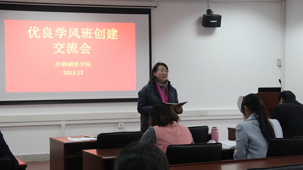 为进一步推动学风建设,做好2015-2016学年校优良学风班创建工作,12月23日下午,沙钢钢铁学院优良学风班创建交流会在工科楼701举行。学院党委书记宋清华、辅导员、全体班主任以及各班班委参加了此次会议,会议由学工办主任孔川主持。