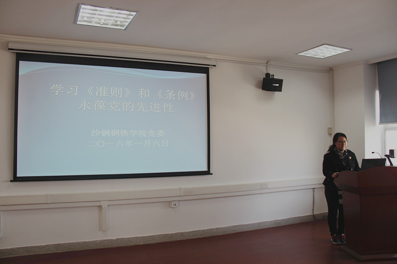 2016年1月6日下午,沙钢钢铁学院党委在工科楼701召开了全体教职工党员大会,主要内容是认真学习《中国共产党廉洁自律准则》和《中国共产党纪律处分条例》,通报学院党政领导班子召开“三严三实”民主生活会情况以及指导教工党支部开展党员民主评议工作。会议由学院党委书记宋清华主持。