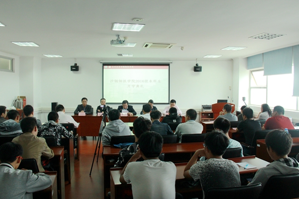 朗朗金秋,丹桂飘香。10月15日下午,沙钢钢铁学院2016级新生开学典礼在工科楼701举行。院长董元篪教授,副院长钟胜奎教授,冶金工程系主任王德永教授,金属材料系主任王晓南教授,教师代表、老生代表及2016级全体新生参加了典礼。典礼由院党委书记宋清华主持。
