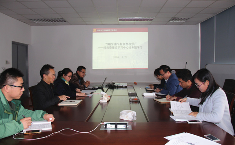 年11月22日上午,学院党委理论学习中心组开展了“做‘四讲四有’合格党员”专题研讨,院党委理论学习中心组成员参加了会议。会议由院党委书记宋清华主持。