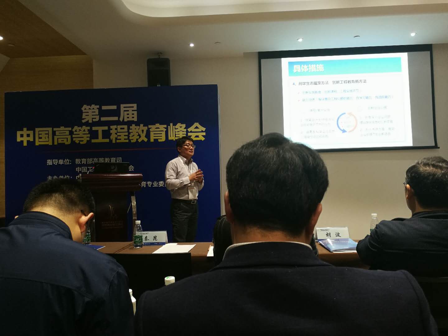 2017年11月1-3日,第二届中国高等工程教育峰会在南京举行,我院丁汉林教授和宋滨娜副教授参加会议并在大会上做主题报告。会议由教育部高等教育司和中国工程院教育委员会指导、中国高等教育学会主办、中国高等教育学会工程教育专业委员会和南京工业大学承办。本次峰会的主题是“新工科建设与中国高等工程教育面临的机遇与挑战”,来自国内外高校和企业专家代表1400余人参加了本次峰会。