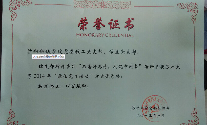 我院教工党支部、学生党支部联合开展的支部活动被校党委组织部评为2014年度“最佳党日活动”
