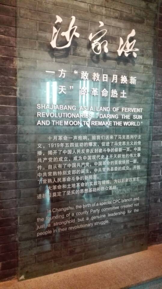 走进沙家浜风景区的大门,首先看到一个照壁,壁上是叶飞将军(1955年的上将)的题词:沙家浜的意义在于,在沪宁铁路武进以东直到上海地区(即江南东路)能否建立抗日根据地,开展抗日游击战争,发展壮大人民抗日力量。一九三九年五月,新四军六团以江抗名义东进,建立了以阳澄湖为中心的苏常太根据地,以及澄、锡、虞、嘉定、青浦根据地,回答了这个问题。——叶飞一九九一年五月五日