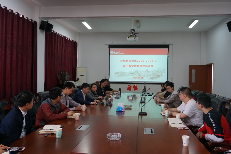 4月28日下午,我院在冶金楼4004会议室召开2020-2021学年第二学期期中教学检查师生座谈会。教务部部长方亮,教务部教学质量与资源管理处副处长常青伟,学院党委书记、教学督导组组长宋清华,学院教务办老师,教师和学生代表等参加了座谈会,会议由副院长丁汉林主持。