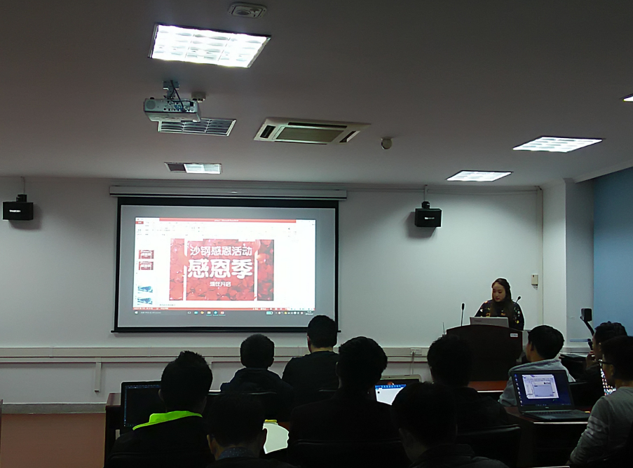 12月4日晚6:30,苏州大学沙钢钢铁学院学生骨干PS、PPT、摄影技能培训会于苏州大学北校区工科楼701举行。首先由2015级黄博向同学们简要介绍一些摄影的相关知识及技巧,如有关摄影构图的九宫格构图法、对角线构图法、框架式构图法和引导线构图等,并且列举出摄影时经常出现的错误并以实例进行讲解。接着由2015级阎书仝向同学们简要介绍PPT的制作,她表示要做好PPT的前提是要好的构思和想法,并且要熟练的使用相关软件。而后她以自己所做的PPT为例,仔细得先同学们解析其中的技巧。2015级杨帆向同学们讲授有关PS的基本技巧,并现场向同学们展示PS的全过程。最后由2015级杨蕾向同学们介绍有关团日活动的知识,她从团日活动的目的、意义、准备及开展等方面向同学们介绍如何做好团日活动。