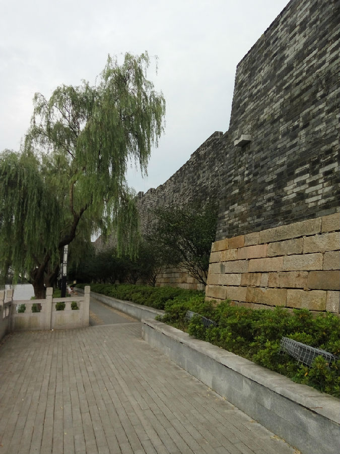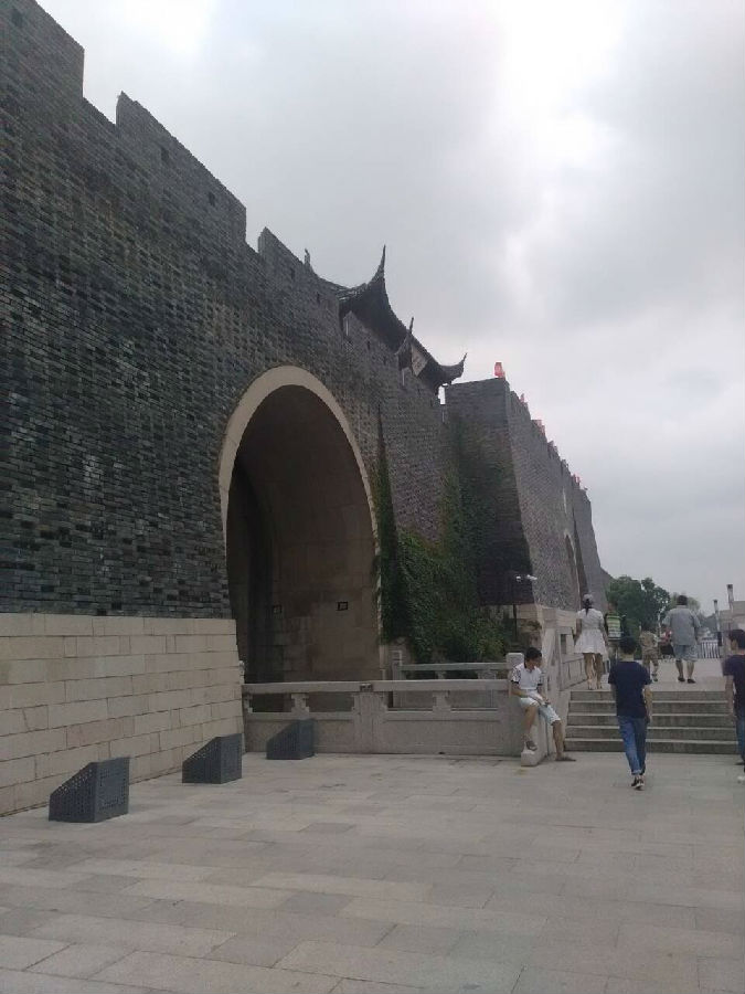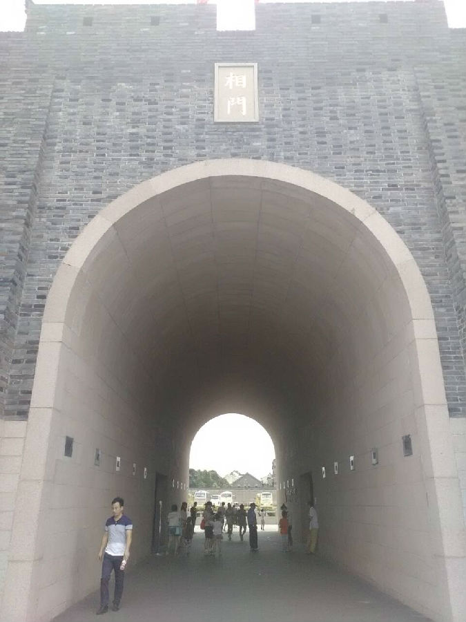 本团队首先来到相门桥,远观相门巍峨绵延,桥下江水滔滔,不禁感叹人间胜地。接着团队成员绕着相门城墙走了一圈,城墙上早已绕满了爬上来的各种绿色植物,一块块青绿的砖石似乎述说着历史的沧桑,城墙上除了正门外有两个水门,巍峨的城墙倒映着护城河的清澈的水中,这是我们初步近距离见识到城墙的古朴与大气。