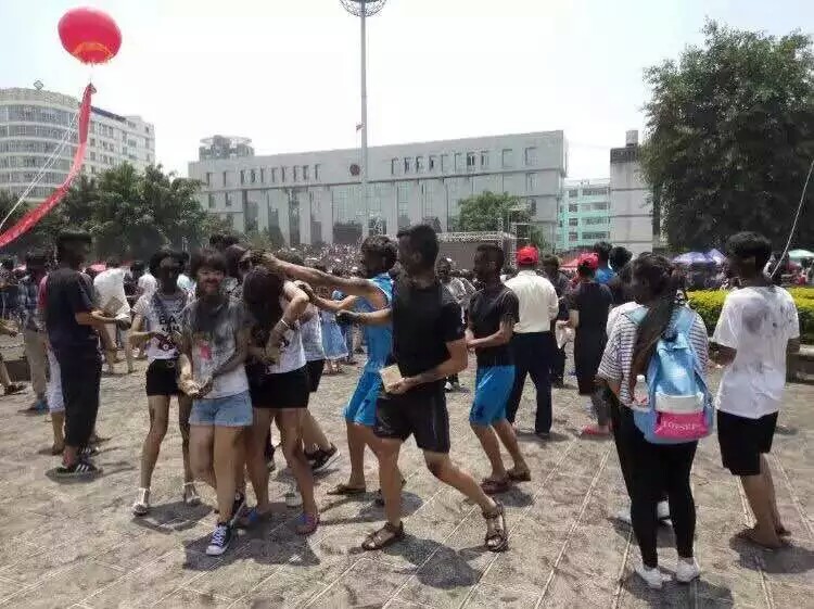 在对当地哈尼人的访问过程中,小组成员了解到,哈尼太阳节就在太阳广场举行,哈尼族人民就在这个广场上进行了哈尼抹黑脸活动,当地人通过用锅灰相互抹黑脸表示祝福。一路沿街走向太阳广场,街上三三两两的学生早已被抹黑了脸,离广场越近被抹黑脸的节奏越发紧张,游客还有些不习惯唯恐避之不及,其实来到太阳广场,相互抹黑脸的“大战”早已开始,就连正在执勤的交警和武警也受到了人们的祝福。一时间广场上、街道两旁人人被摸黑了脸,让人感觉瞬间穿越到了非洲。你抹我,我抹你,抹出爱意,抹给对方祝福,抹出美好的明天。来自不同地域,不同国家的游客,虽然互不认识,但只要你参与到抹黑脸的活动中,大家就没有了隔阂。若是你被抹得满脸透黑,说明得到的祝福最多。
