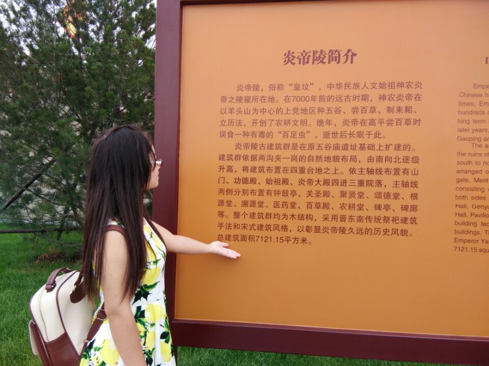 炎帝陵位于山西晋城高平市东北17公里处的庄里村,俗称"皇坟"。陵后的五谷庙原来建筑规模庞大,现仅存正殿五间,东西厢房十几间,为元代所建,是市级文物保护单位。高平炎帝陵内有目前发现最早的炎帝陵石碑,此次,时间小组的成员来到了这里,距离了解华夏祖先。