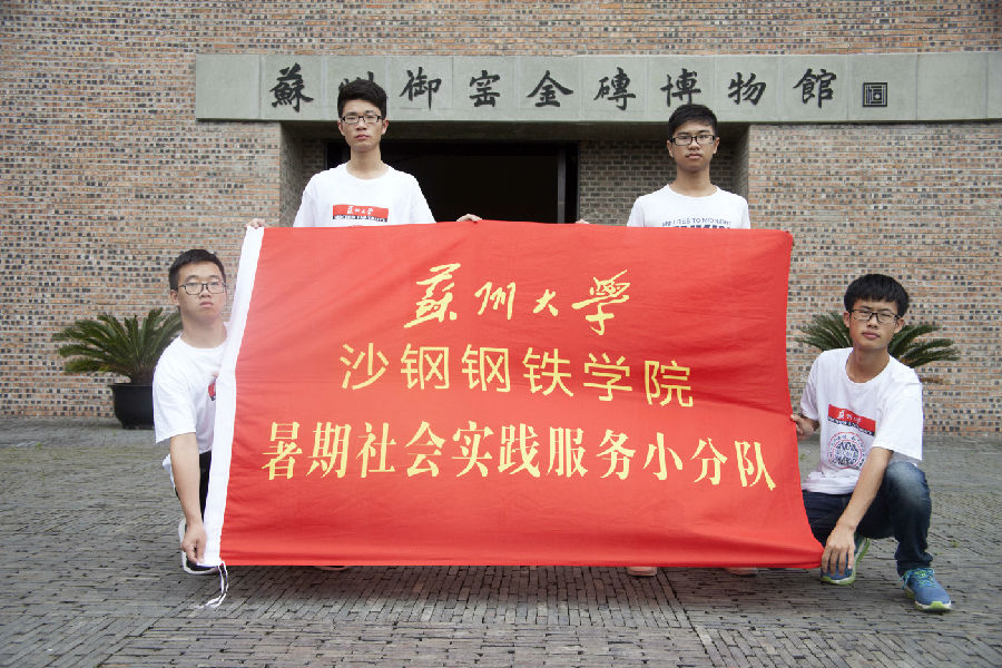 2017年7月1日,今天天气仍是像以往一样炎热,苏州大学沙钢钢铁学院暑期社会实践小分队队员从学校出发前往苏州御窑金砖博物馆。