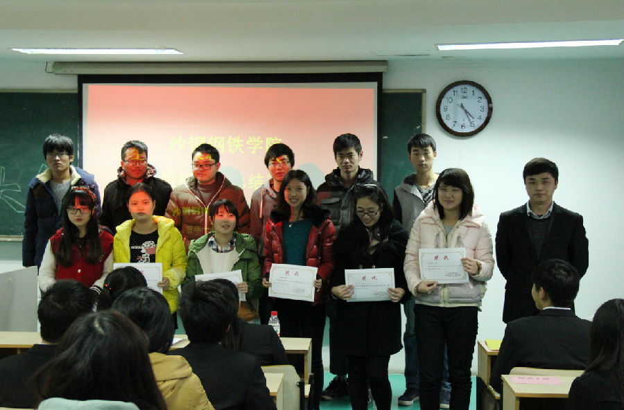 2015年1月13日下午3点半,沙钢钢铁学院学生工作总结交流表彰大会在工科楼211举行。学院党委副书记、副院长宋清华、2014级辅导员郁佳莉、沙钢各学生组织主要负责人及2014级全体学生参加了本次活动。会议由学工办主任孔川老师主持。