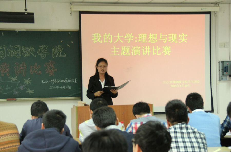 4月29日下午3:00,沙钢钢铁学院“四进四信”系列活动之主题演讲比赛在工科楼210举行,本次演讲的主题为“我的大学—理想与现实”,由各学生组织负责人及各班班长担任评委,郁佳莉老师出席并给予指导。