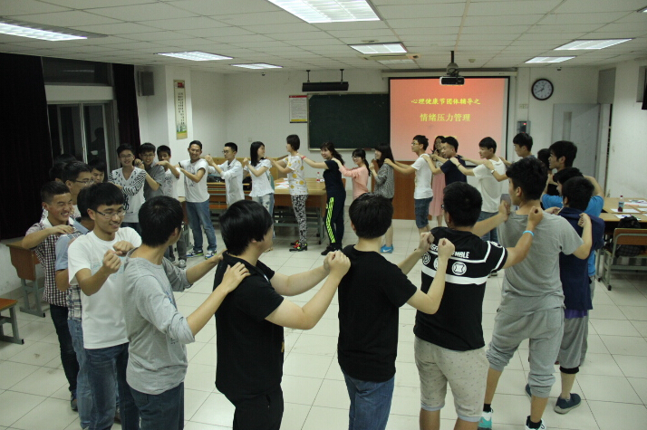 最后,许劼安排同学们围成一个大圈,男女交错,互相为对方揉揉肩、捶捶背,这一环节既增进了同学们的感情,又给同学们留下了一份美好的记忆。同学们在接下来的分享环节中都真诚地讲述了自己的感受,并表示,自己从中领悟到了很多东西,如同学之间的亲近、合理地释放压力与相互信任等。