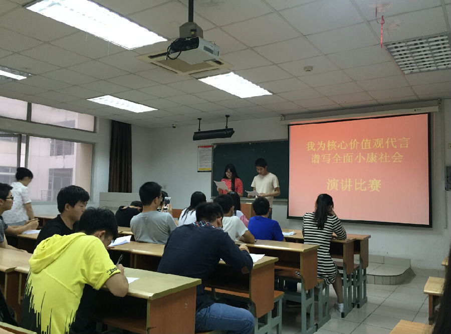 6月7日晚6:00,沙钢钢铁学院“我为社会主义核心价值观代言”演讲比赛在工科楼209教室举行。团委郁佳莉老师,学生会主席郝月莹,科协理事长王心怡,团委副主席李瑶,新闻中心宣传部部长陈卓担任本次比赛的评委。