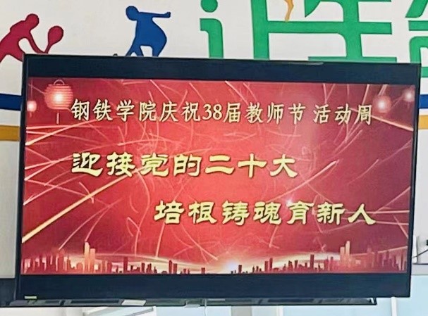 在第38个教师节来临之际,9月7日下午2点,沙钢钢铁学院分工会在教工之家举办“喜迎党的二十大,培根铸魂育新人”教师节活动周开幕仪式。党委书记沈云彩、新入职的教师和教师代表等人员参加了活动,活动由分工会主席宋滨娜主持。