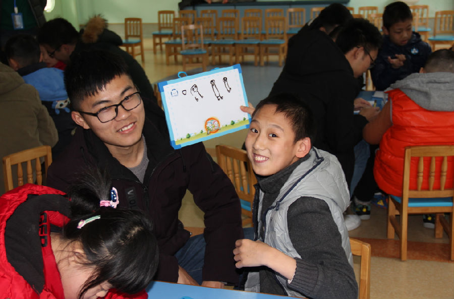 在陪伴孩子们画画之后,就由陈靖雨与王亚两位同学作为“大姐姐”和小朋友们手拉手教唱儿歌,她们和孩子们手拉手站成一排,一边摆着身子一边可爱地唱着儿歌,让在座的所有人都拍手称好。“大哥哥”们则和小朋友们一起用纸折成纸飞机,让孩子们在纸上写下自己的愿望,希望和他们自己的飞机一样将梦想翱翔于天际。接下来便是为孩子们分发礼物和奖品的环节,在得到院方的允许之后学员们为每个小朋友送上了奥利奥饼干等零食,为孩子们准备了可爱的贴纸。整个活动,分党校学员们为福利院的孩子们送上了绘画板图画本蜡笔这样的学习用品,为孩子们带来了可口的零食,为孩子们带来了可爱的玩偶,黏土和有趣的故事书。快乐的时光总是特别短暂的,活动最终在其乐融融的氛围中落下了帷幕,孩子们特别享受这样轻松愉快的一个下午,以至于快离开时也是紧紧抱住大哥哥大姐姐们,不舍得让他们离开。