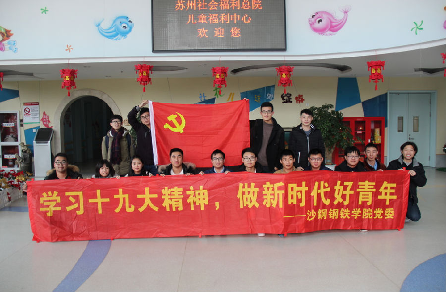12月13日下午,苏州大学沙钢钢铁学院分党校在苏州市福利总院开展了一次以“关爱儿童,奉献爱心”为主题的社会实践志愿活动,为福利院的孩子们献上了自己的一份爱心。