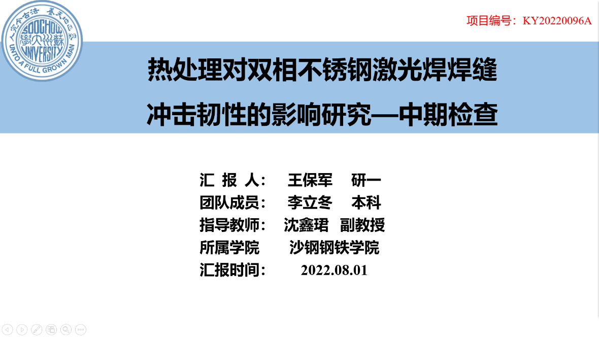 为进一步引导我院学生培养踏实严谨的科学精神和科学态度,推动学生参与学术科技实践、发现和培养创新型人才,培育优秀参赛项目参加“挑战杯”全国大学生课外学术科技作品竞赛等全国赛事。在8月1日下午,苏州大学沙钢钢铁学院举行了第二十四批大学生课外学术科研基金项目中期审核答辩会。本次答辩会采取线上答辩的方式。