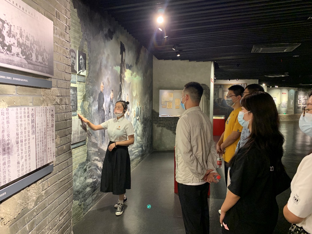 博物馆陈列着众多历史照片、文件和实物,记载着苏州人民在党的指挥下浴血奋战的光辉历程。先烈们在“五卅运动”中的斗争以及为建党付出的牺牲让大家印象尤为深刻。面对帝国主义在上海制造的五卅惨案,苏州人民义愤填膺。一幅幅黑白照描绘着当时苏州人民掀起的声势浩大的反帝爱国斗争高潮,他们或是工人,或是学生,振臂高呼,昂扬振奋,历经几十年春秋仿佛仍在翻涌呐喊,让在场的队员们为之热血,深刻感受到百年前的青年们“有朝气,敢作为”的革命精神与强烈的民族责任感。