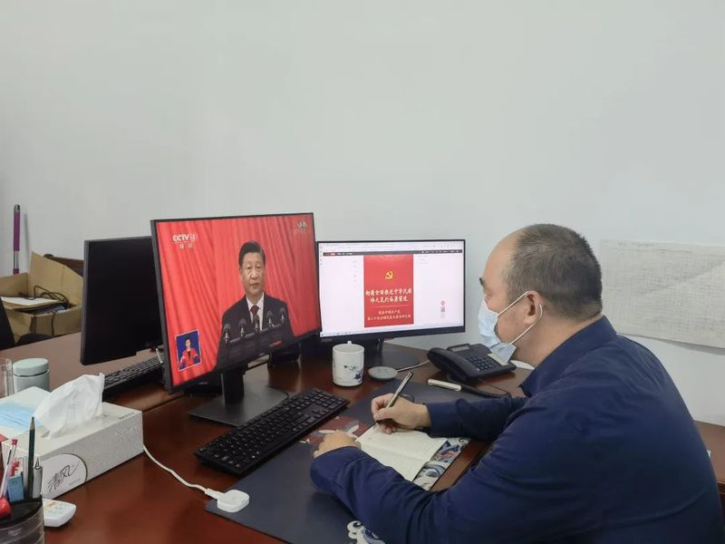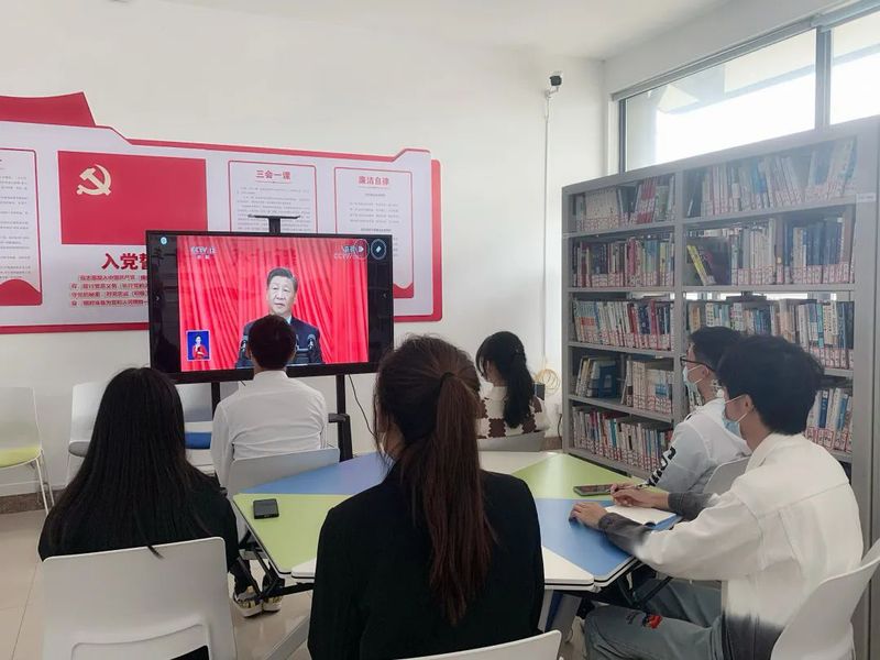 在校园疫情防控的特殊时期,苏州大学沙钢钢铁学院师生仍通过视频号、学习强国app等多种方式,踊跃收看中国共产党第二十次全国代表大会开幕会盛况。同时,我院团委也组织学生骨干在沙钢书屋,认真聆听大会报告,学习党的二十大精神。