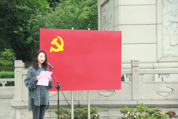 抵达苏州市横山烈士陵园后,全体团员佩戴好亲手制作的小白花,整齐有序、庄严肃穆的走向纪念碑。合唱完《中华人民共和国国歌》后,郝月莹同志代表全体团员宣读祭文。“昨天永远属于过去,今天就在脚下,我们将加倍珍惜这来之不易的幸福,我们将继承先烈们的遗志,以民族复兴为己任,团结奋进,奋勇争先!”