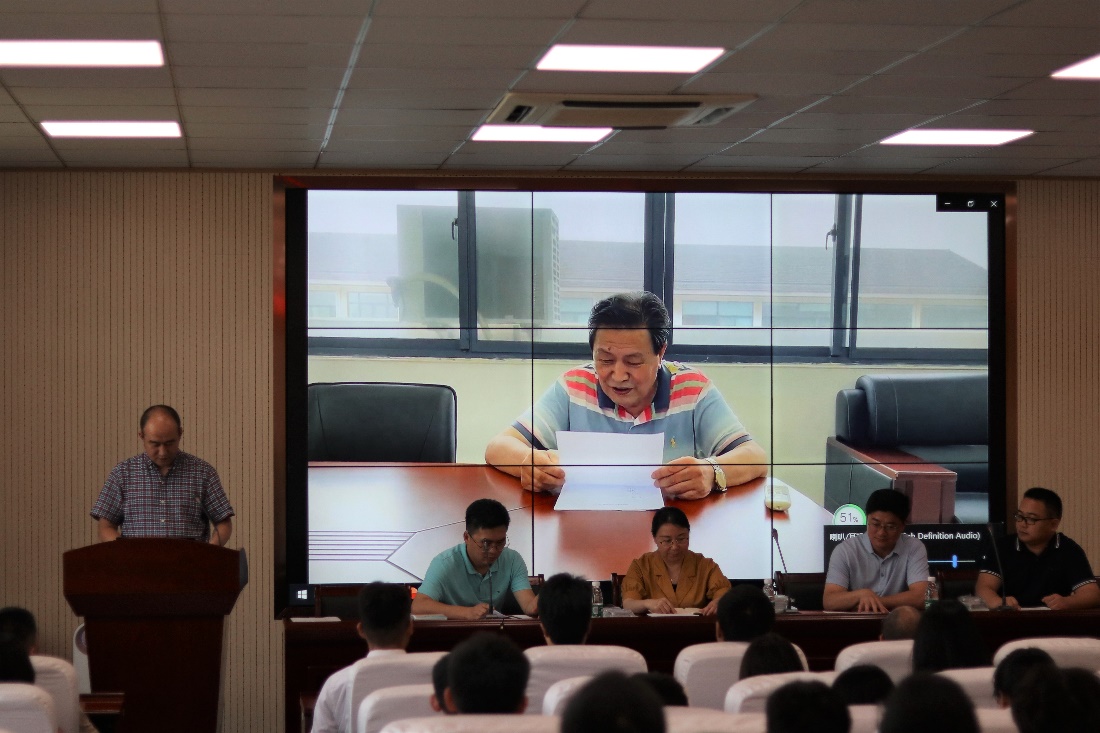 典礼由学院党委副书记徐海洋主持,典礼伊始,全场起立,奏唱国歌。学院院长董元篪以视频方式,首先向2021届顺利完成学业的毕业生表示热烈的祝贺,向辛勤付出的老师和家人表示敬意和衷心的感谢。董院长在讲话中希望各位同学毕业以后一要尽快适应社会,二要脚踏实地,三要继续学习。现实生活需要大家脚踏实地的去奋斗,为社会做出更大的贡献。毕业不是结束,而是另一段美好时光的开始,希望大家勇敢向前,母校永远是你们的家。