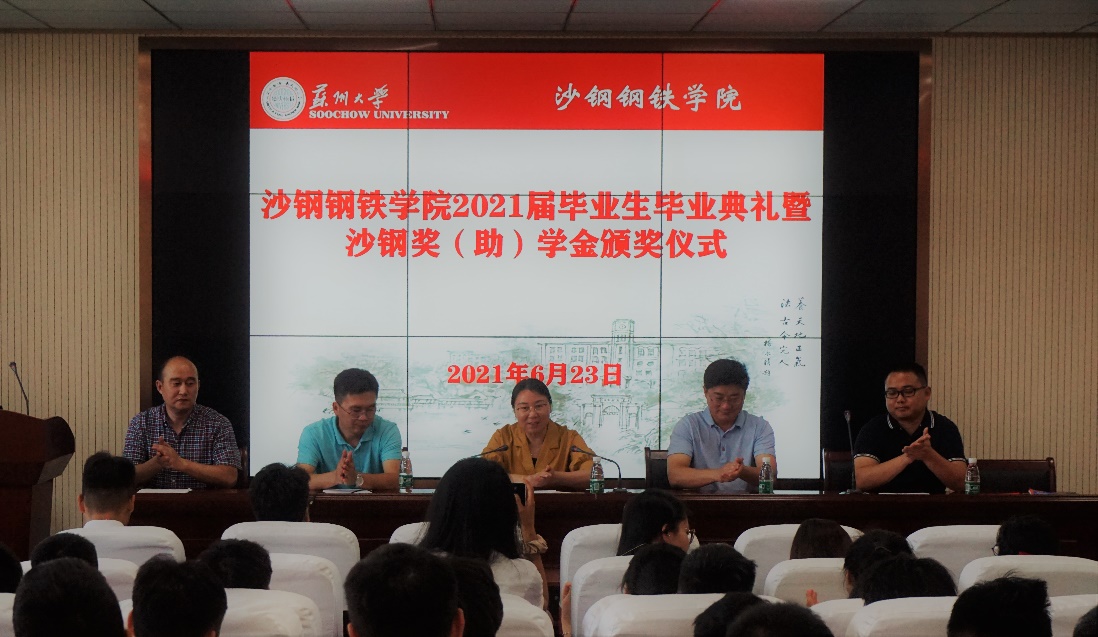 6月23日下午,学院2021年毕业典礼暨沙钢奖(助)学金颁奖仪式在冶金楼3102举行。学院领导、系主任、班主任、辅导员、教师代表、全体毕业生以及沙钢奖(助)学金获得者参加了本次活动。