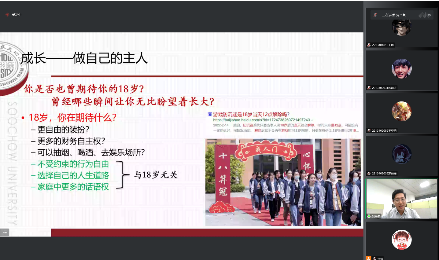 晁教授首先对本场分享会的主题进行了生动的剖析:高中如“川”,有明确的目标和不竭的动力;大学如“海”,等待大家的是自由的空间和无限的可能。大学不是成长的终点,而是同学们真正学会掌控自己生活的起点。晁教授从成长、成才、成年三个方面,结合个人经历分享了关于青春的故事和思考。