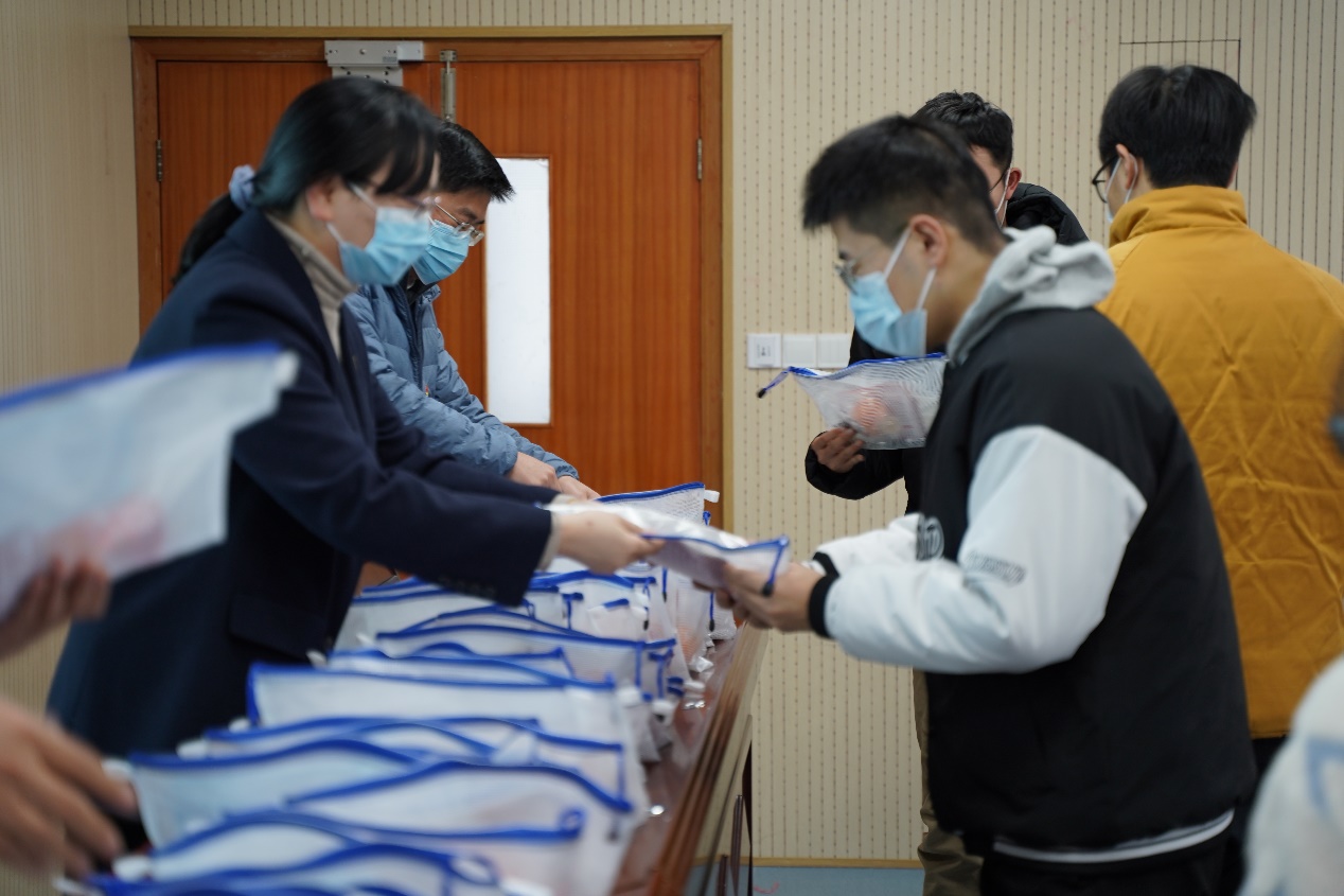 学院党政领导为同学们分发“十全十美”考研大礼包,礼包内有“考研顺利”笔袋、考研祝福贺卡、“金榜题名”胸针、心想事“橙”的橙子、“逢考必胜”棉花糖、“元气满满”巧克力、口罩、暖贴、黑色水笔、纸巾、口罩等防疫物资。希望每一位同学真切感受到了来自学院的关爱和期望,带着温暖去考试,执笔为剑,披荆斩棘;以梦为马,不负韶华,成功上岸!