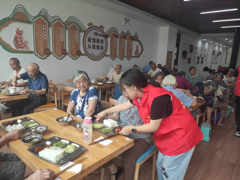 今天成员们的志愿活动紧紧围绕“爱系幼心,情暖夕阳”的主题,快到午餐时间时,在工作人员的带领下,队员们来到御窑社区养老日间照料中心,为高龄爷爷奶奶们分发社区提供的爱心午餐。等爷爷奶奶们开始用餐后,成员们开心满足得离开,前往暑托班帮忙。今天小朋友们正在热情高涨地上表演课,成员们走进课堂,跟他们一起观看各小组表演并参与最后投票环节,看到获胜的同学小朋友们洋溢着笑容,成员们也特别开心。午饭期间,大家跟小朋友们一起用餐、玩游戏,最后以组织他们午休结束了暑托班的志愿活动。下午成员们继续在社区里帮忙登记居民信息,尽可能地发挥作用减轻工作人员们的负担.